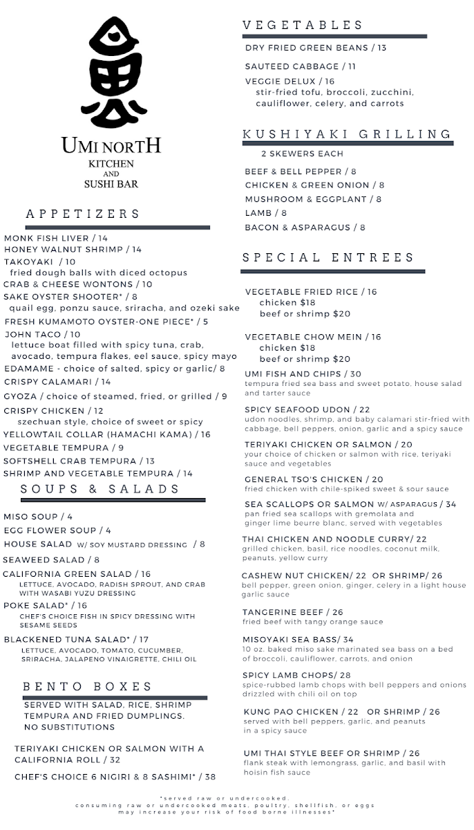 10 oz. baked miso sake marinated sea bass on a bed of broccoli, cauliflower, carrots and onion. Served with rice on the side.