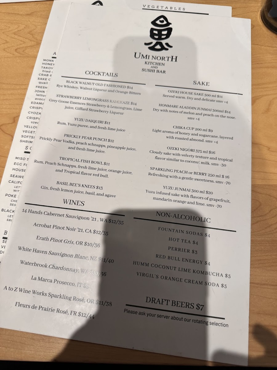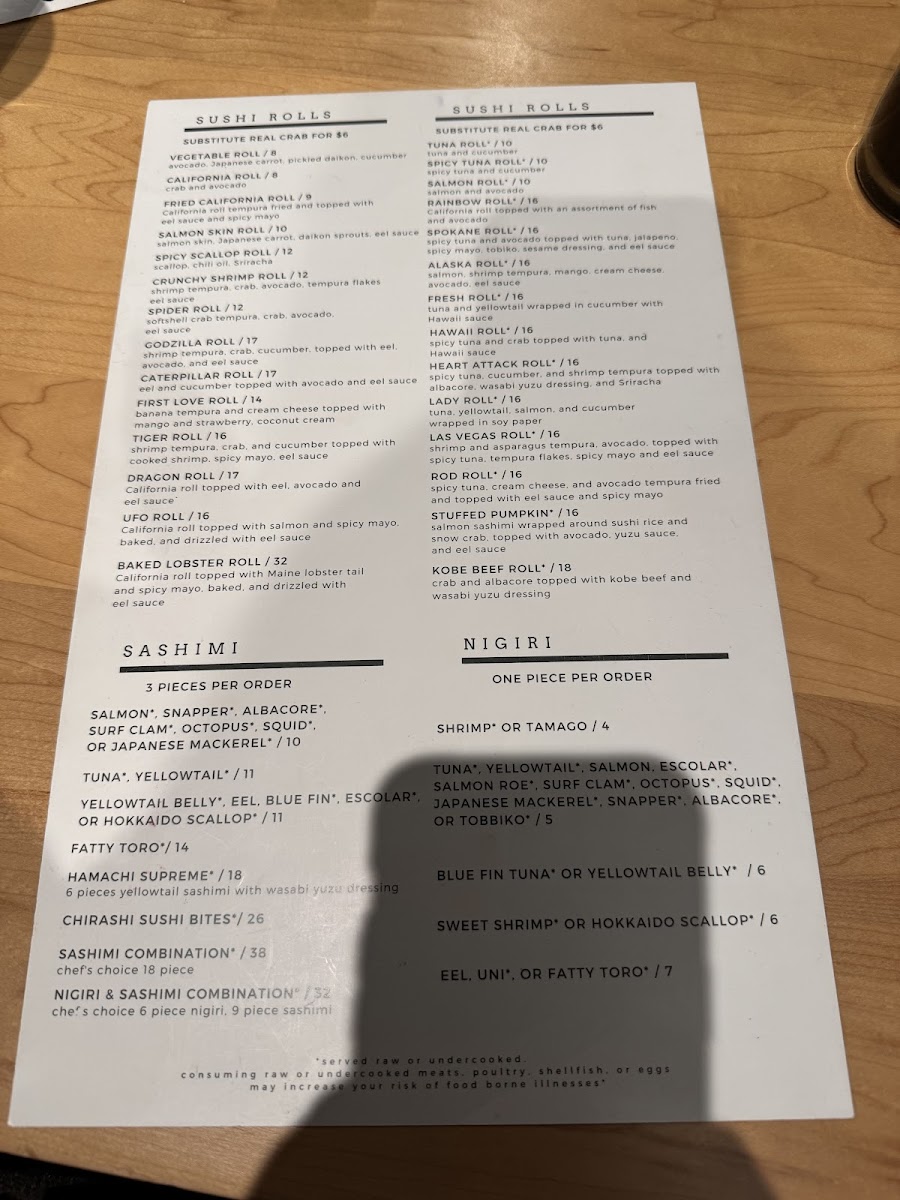 Spicy tuna, shrimp tempura, and cucumber, topped with albacore, wasabi-yuzu sauce, and Sriracha.